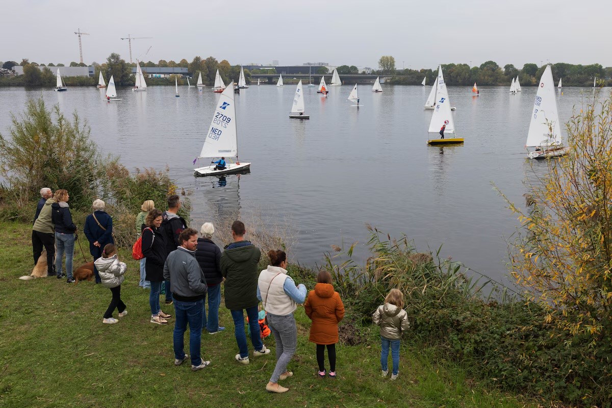 Het wateroppervlak van de Ertveldplas, waar het evenement al decennia plaatsvindt, toont lichte rimpelingen. Maar daarmee is alles gezegd: de plas oogt bijna zo glad als een spiegel. Een half uur eerder heeft wedstrijdleider Frank Doevendans van Watersportvereniging Pettelaer(WVP) vanuit het startschip de diverse eenheidsklassen ‘weggevlagd’