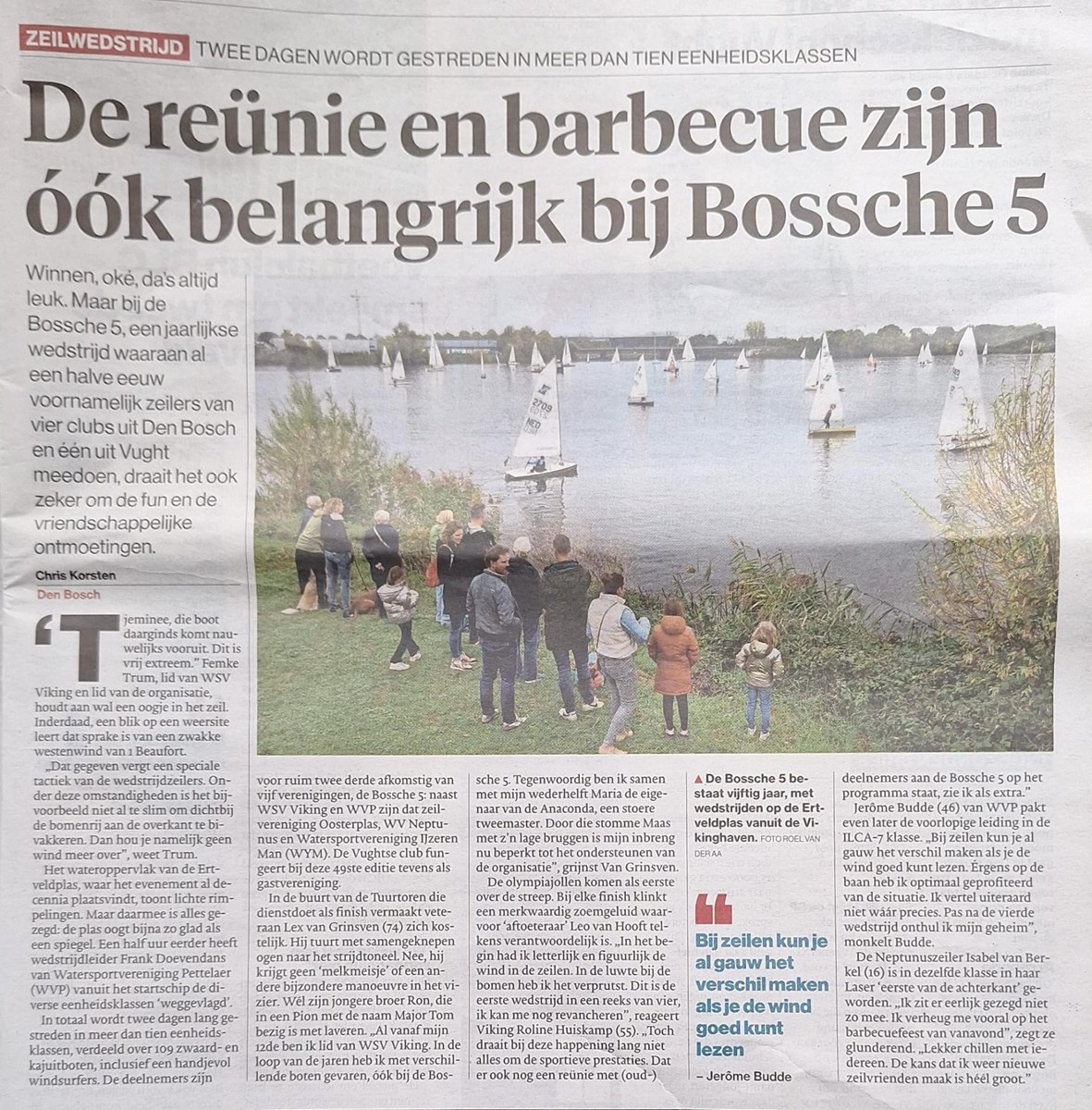 Ooit begonnen in 1976, verenigde dit spectaculaire slotfeest vijf zeilverenigingen uit ’s-Hertogenbosch: WVP, WYM, WVO, Neptunus en Viking. Met tot wel 125 deelnemende boten – van kajuitjachten tot trailerbare schepen – was de Bossche 5 hét hoogtepunt van het zeilseizoen onder de rivieren. Meerdere wedstrijddagen op de verschillende wateren in het Bossche. Bij het realiseren van de wedstrijddagen is er een samensmelting ontstaan en werd het grootste water gekozen voor de gezamenlijke Bossche 5. Hierdoor kunnen ook kajuitjachten meedoen