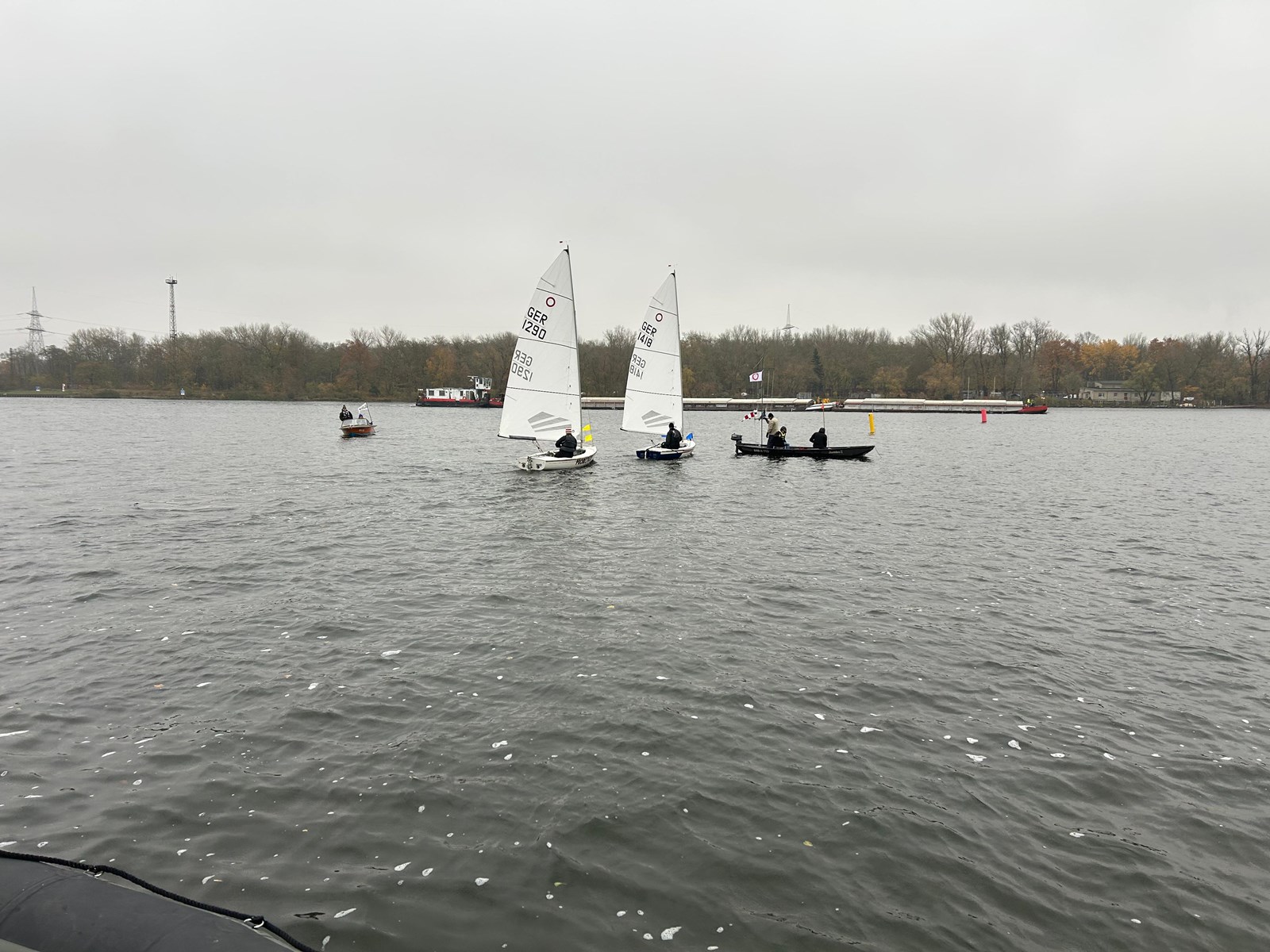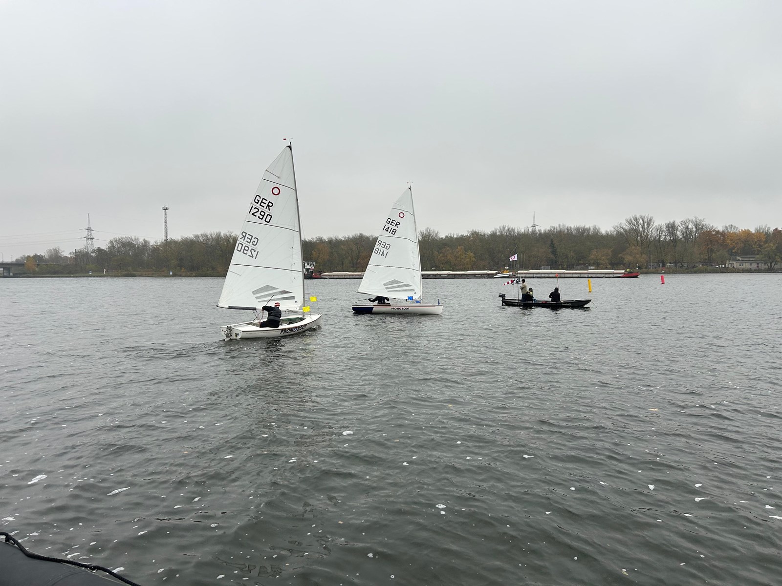 Bij het palaver was mij niet helemaal duidelijk hoe het nu precies zat met deze lijnen en minuten maar gelukkig kon ik de eerste wedstrijden toekijken hoe de lokale zeilers elkaar te lijf gingen. Matchracen is een tactisch spel wat begint bij minuut -3. Dan mag je als zeiler over jouw denkbeeldige lijn richting de startlijn gaan die je dus zoals eerder al gezegd met -2 moet zijn gepasseerd. Daar begint ook meteen de eerste strijd. Als je het voor elkaar krijgt om jouw tegenstander te laat over de lijn te laten gaan heeft deze zijn eerste penalty te pakken. Mijn tegenstander bleek daar heer en meester in te zijn en ik trapte er met open ogen in; meteen in de eerste race uitgeschakeld. Tsja, 700 km reizen voor 7 minuten zeilen. Maar de lol was er niet minder om. Waar het mijn eerste matchrace was bleken deze mannen dit spelletje vaker te spelen. Dat maakte van veel races een mooi en tactisch schouwspel om te zien wat aan aantal keren tot op de finishlijn spannend bleek. Mijn tegenstander blijkt dit spelletje het beste te beheersen en weet in de finale zijn schoolvriend en beste maat Christian Kühn met 2-0 te verslaan.